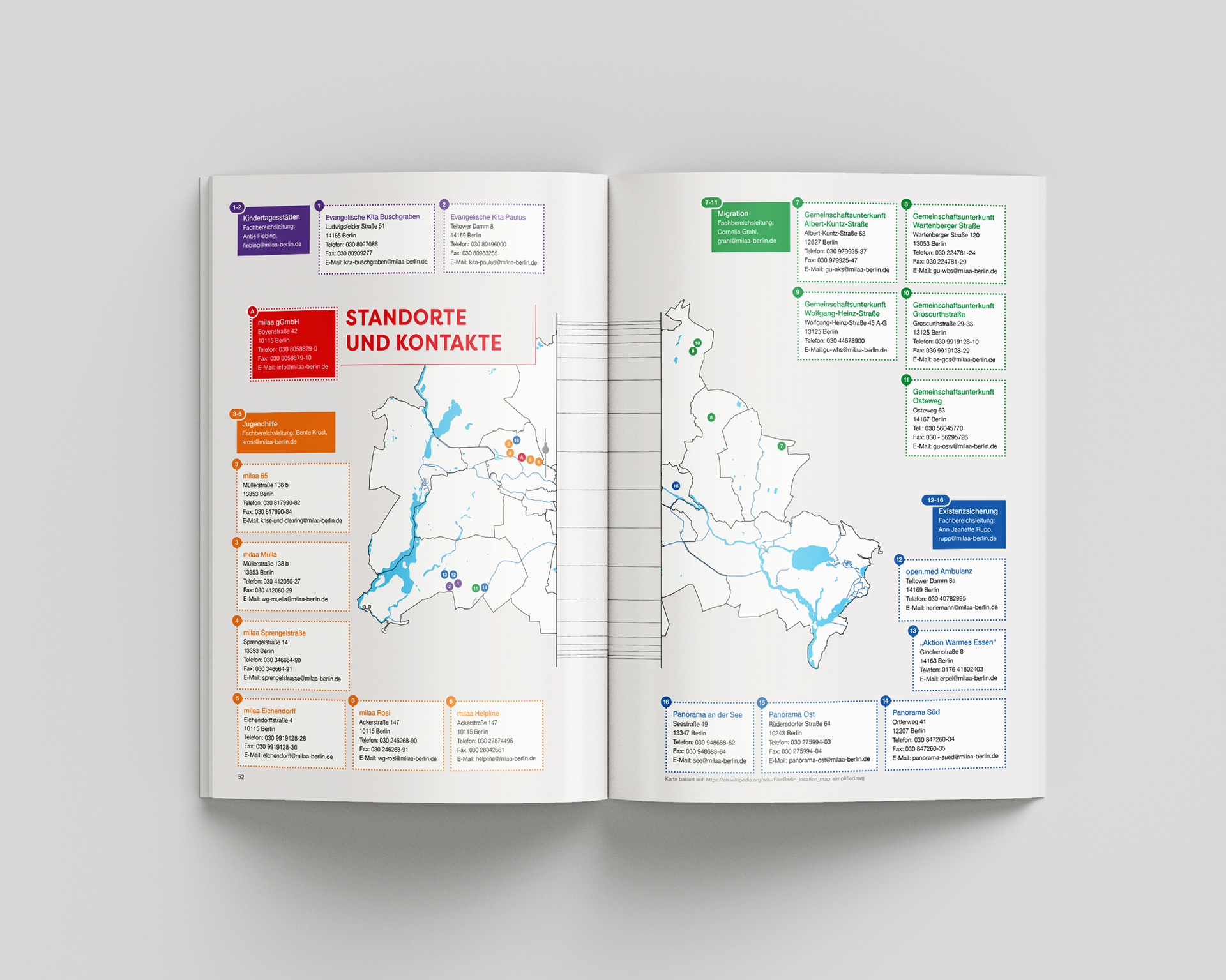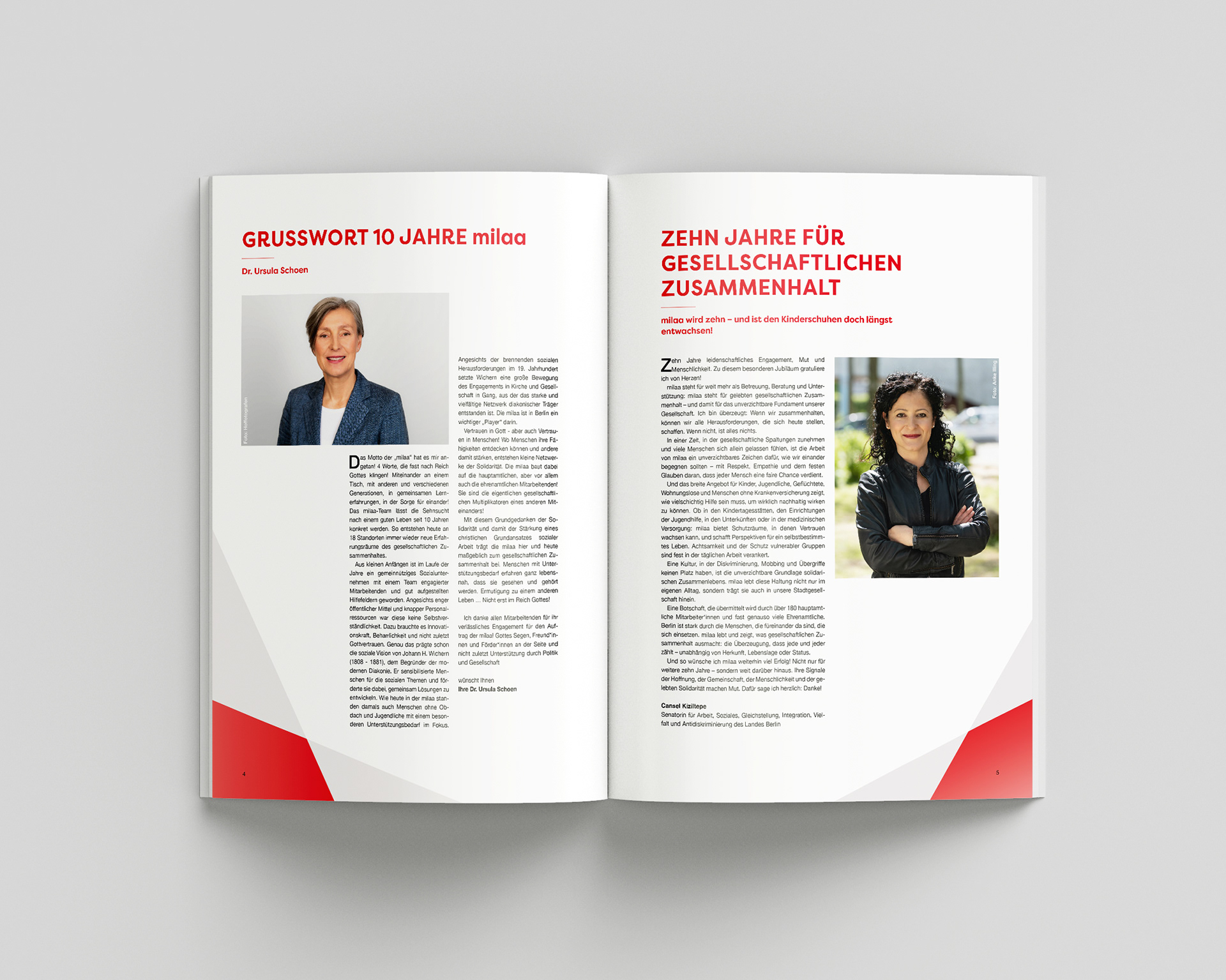 Since 2017, I have been working with milaa gGmbH as a designer, accompanying the organization on a long-term basis. In this collaboration, I design the annual review and, in 2023, developed and defined the corporate design for milaa. Building on this visual identity, a range of print and digital materials has been created – a small selection is shown in the images.