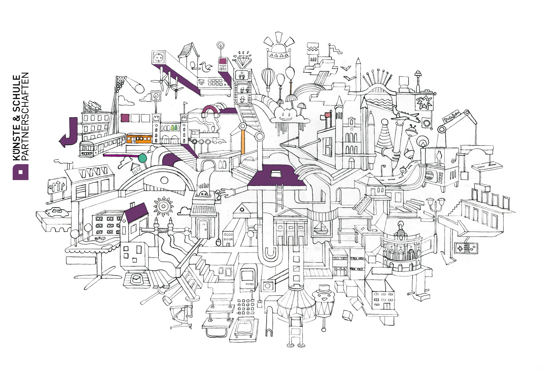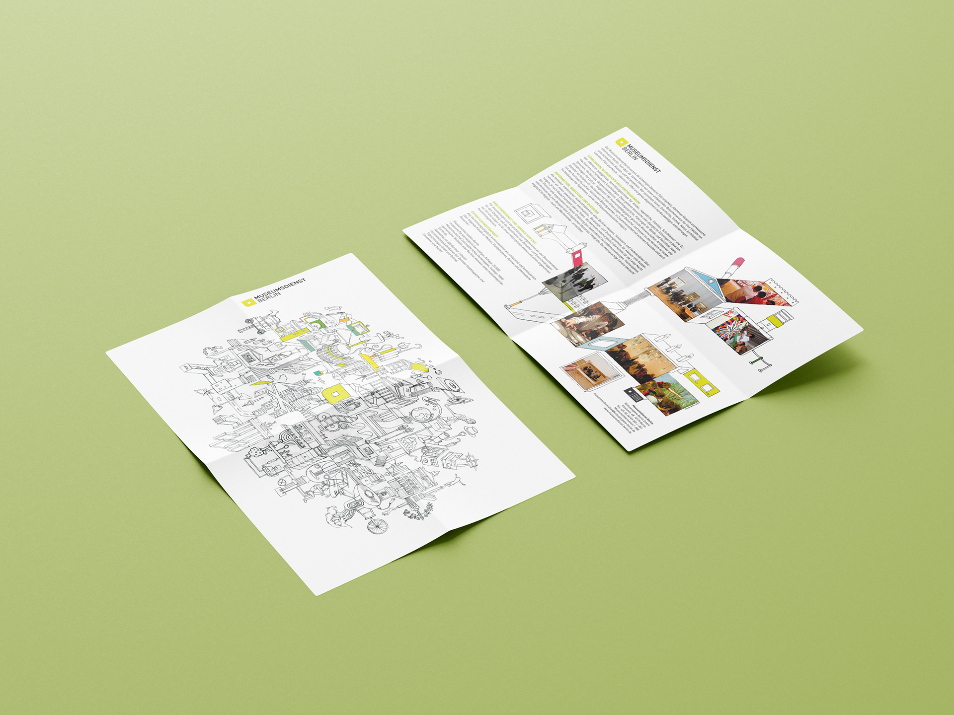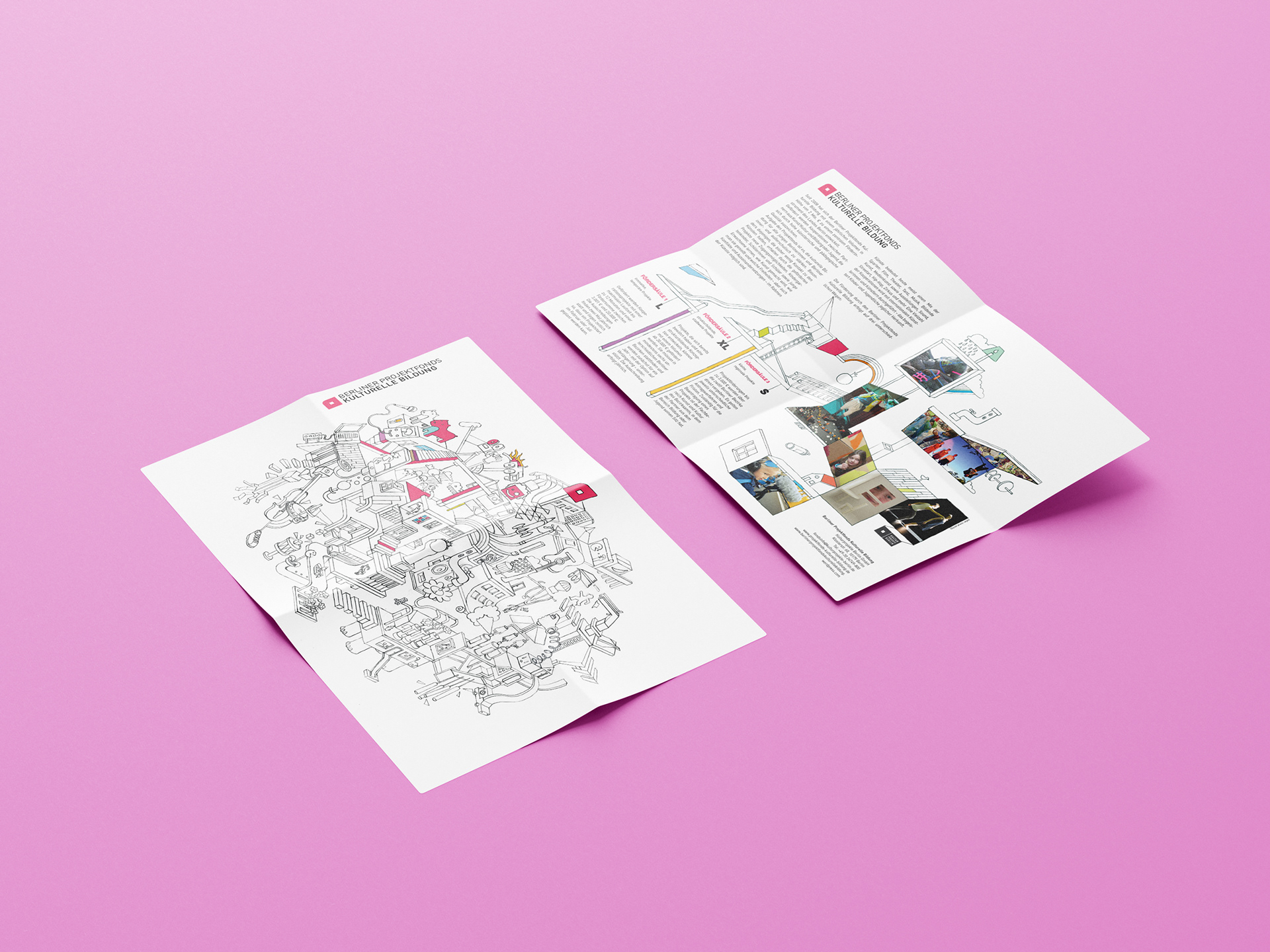 During my time at Kulturprojekte Berlin (2011), I designed a series of three flyers held together by a natural paper banderole. The concept combined information design with a playful twist — each flyer could also be used as a coloring sheet. The result was a creative print piece that merged communication and interaction in a simple yet charming way.